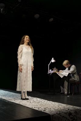 “ "Kovyakin's Records" is a solo performance by Sergei Zagrebnev based on the novel by Leonid Leonov, it is amazing, first of all, how the whole world lays a filigree for a short period of time (just over an hour). Ludicrous and beautiful in its confusion, the very "little man" - Kovyakin - is so close and dear to everyone. His phantasmagoric, and at the same time very cozy Gogulev, which inevitably reminds something, and however, the genius of Leonov's text is that in Gogulev there are features of absolutely any provincial Russian city. The uneasy questions that the protagonist asks himself and the people around him are not modern, but at the same time they are very understandable to the viewer. As Dmitry Bykov correctly said, "Leonov attracts and - more than that - attracts those who are not satisfied with the matrix, those who are trying to understand how everything is really arranged." And after the performance you understand, even a little. "Director and performer Sergei Zagrebnev Spoke after the premiere about the long, difficult search for the text, I think that the choice was a success, Zagrebnev so organically assumed this role, that I do not lose the feeling of "perfection" of what I saw. "The problem of the" non-loneliness "of the actor in Scene interestingly solved with Portraits created by the artist Yevgenia Malakhova.This is indeed a solo performance where you forget that there is one actor on the stage, and the scenography is both laconic and rich: a whole huge world made of talent, ink, and cardboard.It is an ideal version of a tragicomedy for me - when the spectator, absorbed in the play, laughs, cries, ponders, at last - calms down and dissolves in a very strong final, and never leaves the room the same.