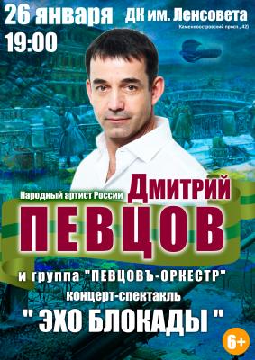 Народный артист России Дмитрий Певцов и «Певцовъ-оркестр» исполнят знаменитые песни военных и послевоенных лет. Со сцены прозвучат стихи и воспоминания из дневников блокадников.
