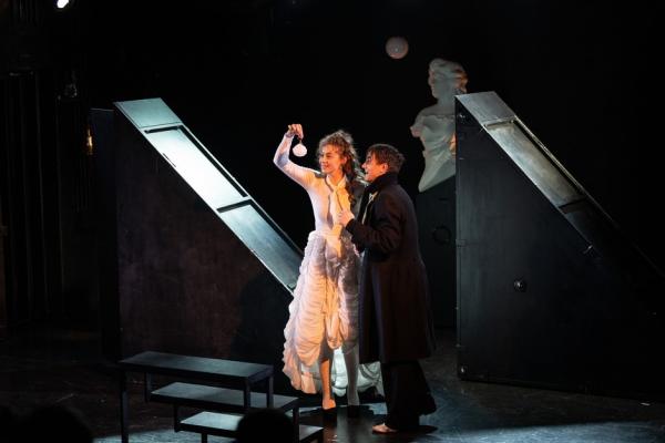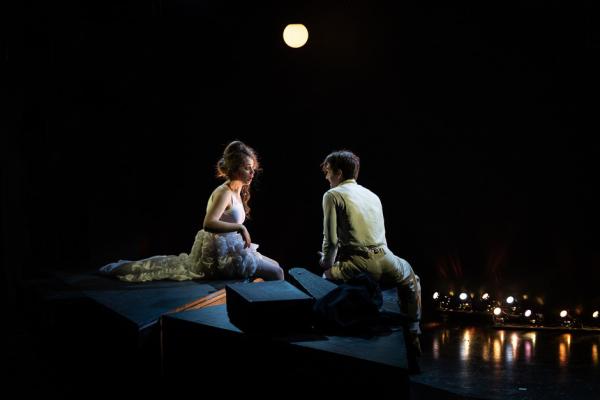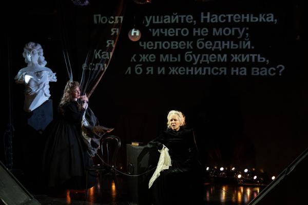 Петербург живет крайностями. Его улицы либо погружены в кромешную темноту, либо залиты бесконечным светом. Дожди сбивают с ног, наводнения сносят дома и мосты, но после каждой бури вода вновь становится смиренной гладью. Так и душа ищет успокоения — среди тревог, одиночества и внезапных и редких вспышек счастья. «Белые ночи» — история о поиске равновесия. О попытке схватиться за другого, если не нашёл опоры в себе. О любви как спасательном круге, который может удержать на плаву, но и унести в открытое море. На сцене — город в резких контрастах. Черно-белая графика растворяется в акварели, застывшая вода оживает в ритме дыхания. Герои балансируют на грани света и тени, надежды и отчаяния, того, что кажется вечным, и что длится одно единственное мгновение.