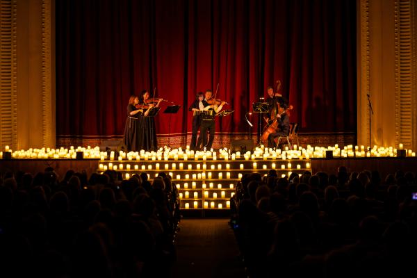 Всё это — в живом исполнении струнных, в обволакивающем тепле свечей, в полумраке, где каждый звук — как луч света на холсте. А вы, затаив дыхание, станете частью этой переменчивой музыки — как будто природа дышит через вас.
