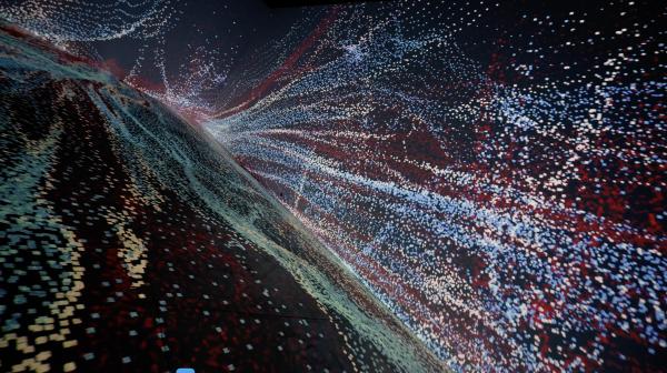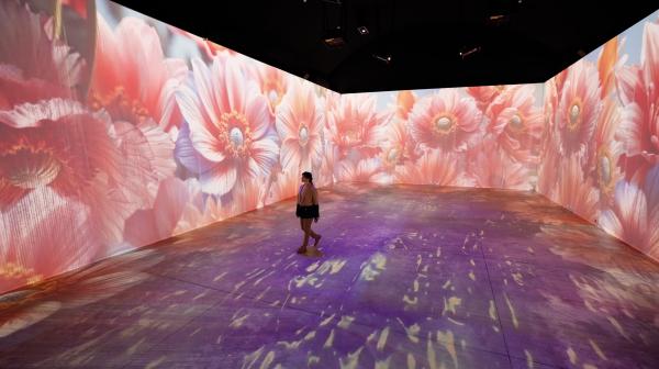 площадки — проекционный зал, где стены и пол отображают контент — 500 м² проекций. Это возможность в прямом смысле слова оказаться внутри проекта и прочувствовать его