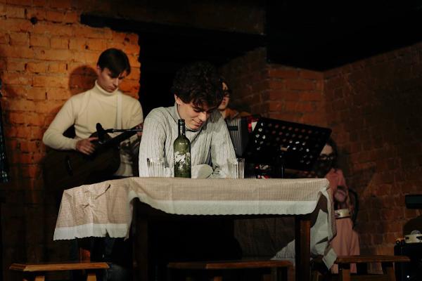 В спектакле «Веня Дркин. Сказки на кухне» звучат песни самого Вени Дркина, которые добавляют особую атмосферу и глубину происходящему на сцене.