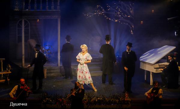 «- Музыка Максима Дунаевского прелестна, стихи Юрия Ряшенцева прекрасны, - отсюда наше общее понимание чеховской прозы в рассказе «Душечка», который представляется мне, и не только мне, шедевром русской литературы.Но сцена требует не только чтения, но и прочтения, превращающего рассказ в театральное зрелище, в игру, в некую версию, принадлежащую другому виду искусства. Жанр «русского мюзикла» с его ставкой на психологизм (не только на развлекательность!), на человечность и сострадание – может помочь нам распознать главные и тайные авторские смыслы первоисточника.Чехов ни в коем разе НЕ РАЗОБЛАЧАЕТ «душечку». Он всего лишь старается понять этот удивительный характер. Поставить диагноз искреннему, чисто женскому поведению. Конечно, он с юмором и грустью рассказывает нам частную историю. Как, впрочем, и всегда. Но так же как всегда, он силой своего таланта заставляет нас, сегодняшних, вдруг подумать о том, что все женщины мира, без преувеличения – при всей разности их судеб и характеров, во все времена и во всех странах – немножечко «душечки». Да, да, все до одной!