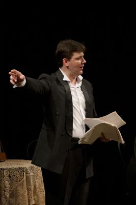 “ «Записи Ковякина» - моноспектакль Сергея Загребнева по повести Леонида Леонова, удивителен прежде всего тем, как филигранно за небольшой промежуток времени (чуть больше часа) выстраивается перед глазами зрителя целый мир. Нелепый и прекрасный в своем смятении, тот самый "маленький человек" – Ковякин – такой родной и близкий каждому. Его фантасмагоричный, и в то же время очень уютный Гогулев, который что-то неизбежно напоминает, а впрочем, гениальность текста Леонова в том, что в Гогулеве есть черты совершенно любого провинциального русского города. Непростые вопросы, которые задает себе и окружающим главный герой – они и несовременны, и в то же время очень понятны зрителю. Как верно сказал Дмитрий Быков "Леонов привлекает и – больше того – притягивает тех, кого не устраивают матрицы; тех, кто пытается понять, как все устроено на самом деле». И после спектакля ты понимаешь, хотя бы немного. Режиссер и исполнитель Сергей Загребнев говорил после премьеры о том, каким долгим, сложным был поиск текста. Считаю, что выбор удался в высшей степени. Загребнев настолько органично принял на себя эту роль, что меня не покидает ощущение "совершенства" виденного. Проблема "не-одиночества" актера на сцене интересно решена с помощью портретов, созданных художником Евгенией Малаховой. Это действительно моноспектакль, где забываешь, что на сцене один актер. И сценография – одновременно и лаконичная, и такая богатая: целый огромный мир, созданный из таланта, туши и картонки. Для меня это идеальный вариант трагикомедии – когда зритель, весь поглощенный спектаклем, смеется, плачет, размышляет, наконец - успокаивается и растворяется в очень сильном финале. И никогда не выходит из зала прежним.
