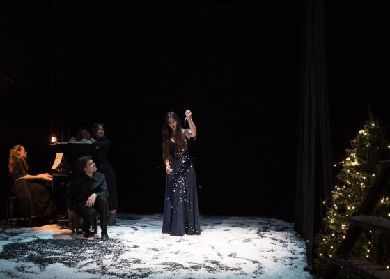 “ В первых числах декабря я сходила на премьеру музыкальной фантасмагории ученицы Римаса Туминаса режиссера Гульназ Балпеисовой "Нянины сказки" по мотивам сказок А.С. Пушкина и Г.Х. Андерсена в Театре музыки и поэзии под руководством Елены Камбуровой. Я не просто впервые была в этом театре, но и никогда о нем даже не слышала. Теперь понимаю, какое это упущение с моей стороны... Первое что хочется отметить - это отношение работников театра к гостям. Еще перед входом в фойе, сидя на диванчике напротив кассы, я получила множество искренних приветствий и теплых улыбок от заходящих в театр работников. Такие театры становятся домом, в такие театры особенно хочется возвращаться. Верно же говорят, что театр начинается с вешалки. Внутри от неожиданности я даже не сразу сдала в раздевалку пальто. Какой же в театре интересный интерьер! Два огромных старинных сундука, угловые полочки с миниатюрными книжками, старинный граммофон, множество сувениров на фортепиано, миниатюрный кукольный театр на стойке гардероба. Невольно теряешься, хочется все рассмотреть. Мне сказали, что это все - подарки для Елены Камбуровой. Очень атмосферно! Теперь о самом спектакле. Честно скажу, я не ожидала! Совершенно необыкновенная режиссерская работа. Четыре сказки словно сон во сне создают впечатление бесконечности поставленных друга напротив друга зеркал. И в эту таинственную бесконечность затягивает, чтобы изменить наше сознание и вернуть в реальный мир обновленными. Мы привыкли видеть сказки наивными детскими произведениями, которые учат малышей доброте и морали. Но кто направит нас на истинный путь в сознательном возрасте, через многое прошедших, толстокожих и матерых? Стряхнув с детских сказок розовую пыльцу наивности и красоты, Гульназ Балпеисова преподносит нам приземленный хаос с весьма острыми углами. Удивительно, но, пропитанный жестокостью и болью, он словно губка впитывает наш негатив, делая нас светлее и счастливее. Весь спектакль пронизан юмором, который сопровождает героев даже в самые тяжелые минуты. Я думаю, это еще один намек из сказки – всегда быть позитивными и чаще улыбаться! Мы видим здесь непривычные нам образы. Добрая нянечка Арина Родионовна перевоплощается в Пиковую даму, которая руководит героями как марионетками. Царь Салтан, управляемый ткачихой с поварихой, предстает перед нами детиной, не способным противостоять подстрекателям. Царь Гвидон крушит все вокруг себя, переживая предательство и страшную волю своего отца. Мечтающая о замужестве Спящая красавица становится пародией на современных девушек, гоняющихся за выгодными женихами. А у самого синего моря абьюзер старуха из алчности доводит до отчаяния своего забитого старика. И если воссоединиться семье Гвидона помогает Царевна-Лебедь, а найти любовь Спящей красавице - ее брат богатырь из моря, то примирить стариков приходится самой рассказчице. Этот спектакль - словно иная сторона нашего мира, некое зазеркалье, герои которого должны найти свет, чтобы и мы, и наш мир тоже стали светлее. И они находят его, достигая гармонии и счастья, достигая той черты, за которой заканчивается страшная сказка и начинается нормальная жизнь. В главной роли в спектакле выступает основательница и художественный руководитель Московского театра музыки и поэзии Елена Камбурова. Великолепная 