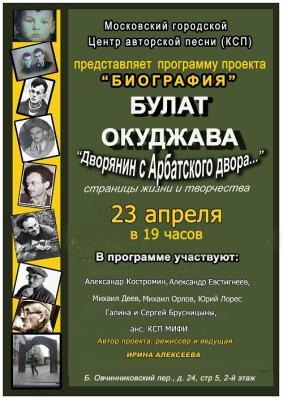 Программой авторского проекта Ирины Алексеевой «БИОГРАФИЯ», посвященной Булату Окуджаве, завершается этот сезон проекта
