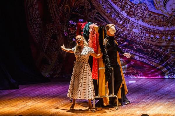 В спектакле есть место и комедии. Сцены с участием нового управляющего Шоле и его супруги-примы Карлотты нарочито комичны. Сам Эрик не лишён чувства юмора, правда, юмор немного чёрный, но такова жизнь в подвале. Первый акт довольно светлый и лёгкий, в нём очерчивается круг взаимоотношений персонажей. Заканчивается он трагично: фантом сбрасывает на сцену люстру, и это намёк на то, что дальше всё будет только хуже. Второй акт намного драматичнее, в нём происходит конфликт Кристин и Эрика, обнажившего по её просьбе лицо. В нём и одна из самых трогательных сцен в спектакле — дуэт отца и сына, бывшего управляющего и фантома. Они наконец-то воссоединяются, но, увы, ненадолго, лишь для того, чтобы расстаться уже навсегда: фантом умирает, получив первый и последний в своей жизни поцелуй от Кристин.