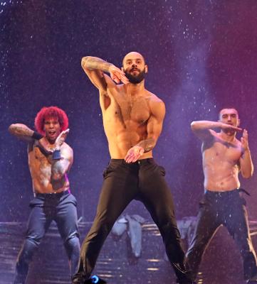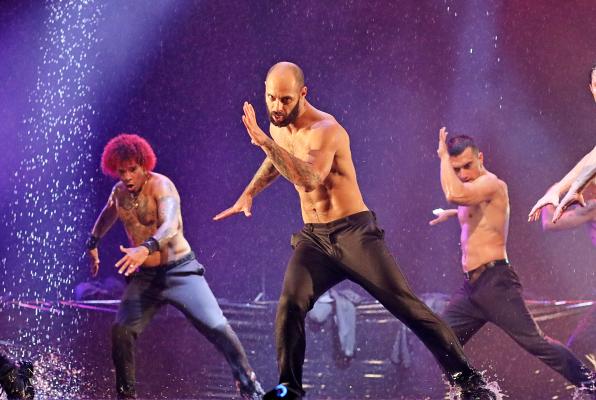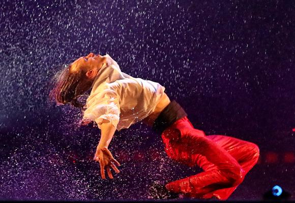 В шоу переплетены яркие музыкальные композиции с потрясающей хореографией под проливным дождем на протяжении всего спектакля.