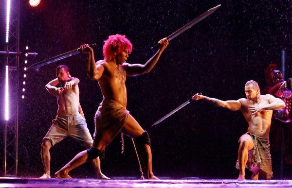 В центре спектакля – не просто танец. Это пульсирующий ритм битв и тишина перед бурей, ярость схватки и нежность прощания. Хореография вбирает в себя самые разные стили: от народных мотивов до современной пластики, от резких, рубленых движений до плавных, почти воздушных парений. А дождь, льющийся на сцену, становится то стеной, сквозь которую прорываются герои, то зеркалом, отражающим их эмоции.