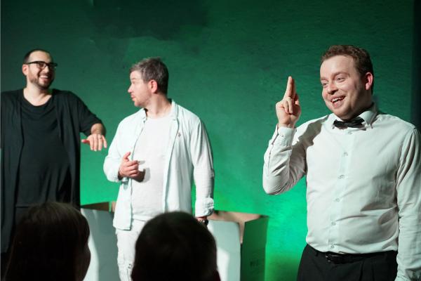 Один из моих самых любимых спектаклей в Квартирнике! Умно, тонко, жизнерадостно! Играют отличные ребята. И сохраняется приветственный бокал шампанского. Это приятно