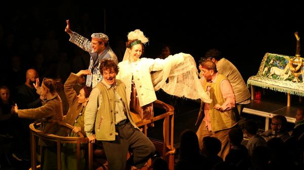 “ ⠀ «Укрощение строптивой» - наверное, одна из самых популярных и любимых пьес. Спектакль с таким названием мы найдём в репертуаре практически каждого театра. ⠀ В Государственный театр киноактера я отправилась, так как мне хотелось увидеть именно режиссерскую версию Игоря Яцко. ⠀ Действие перенесено на Дикий запад. Здесь за каждым поворотом можно встретить ковбоя, или яркую красотку, слышны бесконечные звуки стрельбы. Здесь много неожиданных и интересных режиссерских находок. Один артист может исполнять несколько ролей. Само действие очень динамичное. ⠀ Интересно решены декорации. На огромных белых полотнах мы видим видеопроекции, порой весьма неожиданные. ⠀ В спектакле созданы все условия, чтобы артисты могли показать себя с самых разных сторон. Мне очень понравилась сцена, в которой Сергей Хачатуров превращается из молодого юноши в почтительного господина Винченцио, да ещё и сам с собой ведёт диалог). ⠀ Артисты очень активно взаимодействуют с залом, постоянно к нему обращаются. ⠀ Меня смогли впечатлить два артиста. Анастасия Привалова, исполнившая роль Транио, слуги Люченцио. За ее игрой я наблюдаю уже год в самых разных театрах. И каждый раз она меня удивляет. Яркая, динамичная, живая. Не могу обьяснить словами, просто на неё хочется смотреть. ⠀ И мне понравилось, как играл Антон Стреляев, исполнивший роль Петруччо, жениха Катарины. Среди всех задействованных артистов у него лучшая дикция. Он очень харизматичный и эмоциональный. ⠀ Спектакль оставил положительное впечатление) Я смогла увидеть одно из любимых произведений в совершенно новом ключе.