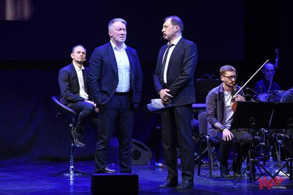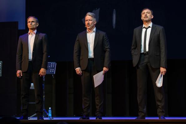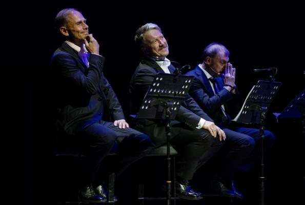 На сцене актеры - Сергей Чонишвили, Алексей Кравченко, Сергей Шнырёв,