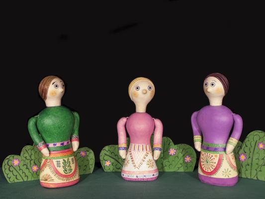 The performance literally bewitches with its beauty both adults and kids: bright, expressive dolls soar in the rays of light in a black velvet-covered scene.