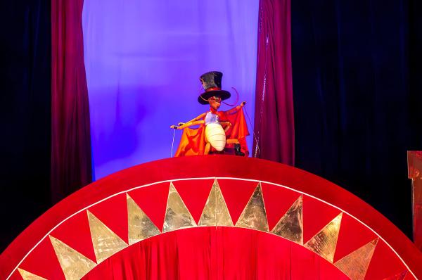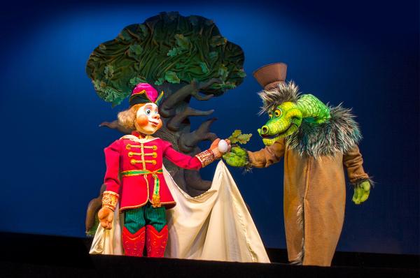 “ Good performance - bright, noisy. Before the beginning of the performance, in the intermission and at the end of the action, a troupe of actors in costumes is playing around the hall and lobby, playing musical instruments. Duration 1 hour 50 minutes with intermission. The age limit is 6+ correct. There are differences from the original fairy tale, but in general it looks organically.