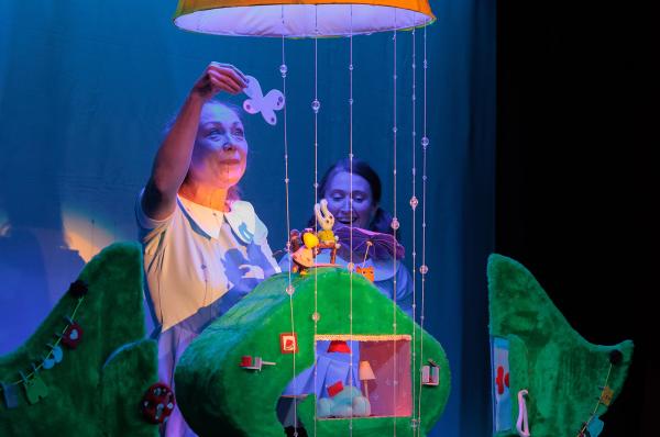 Cпектакль-игра для самых маленьких, главная особенность постановки – её миниатюрность. Лисёнок, Зайка и Ворона – крохотные куклы из фетра, размером с детскую ладошку, живут в трехэтажной Старой Ели со всеми удобствами. У каждого есть кроватка со стеганым одеялом, душ, а на самой настоящей плите пекутся самые вкусные пироги. Зрители активно участвует в представлении. Они вместе с артистами познают окружающий мир на ощупь, помогают героям сказки делать открытия, учатся волшебству и дружбе.