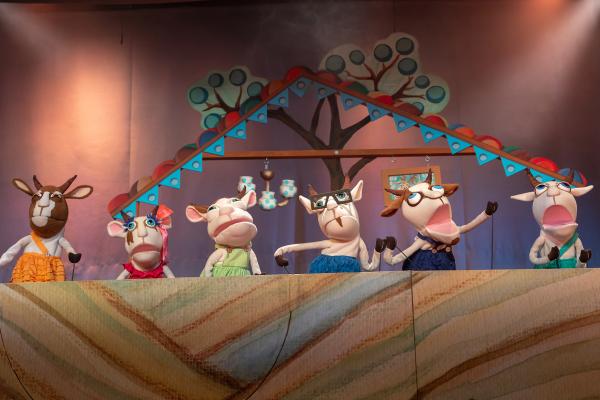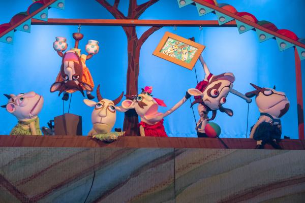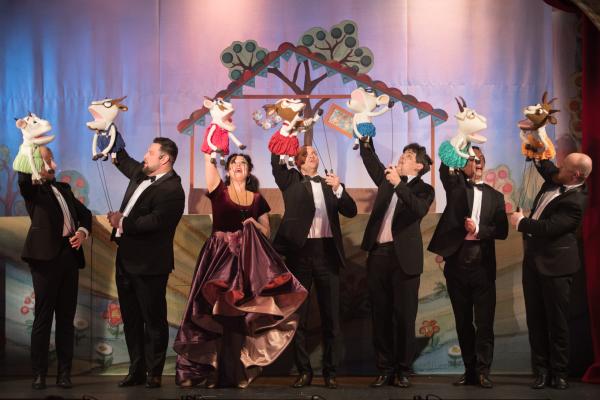 Кукольная опера – невероятно увлекательный жанр! Козлята поют свои забавные песенки и смешат детей проказами, Волк берёт уроки пения у птиц-учителей, стараясь расширить диапазон своего голоса от баритона до сопрано и петь, как Коза. Как в настоящей опере, среди действующих лиц есть и ужасные злодеи. Почти трагическая история про то, как козлята открыли дверь Волку, наполнена в спектакле волшебством музыки, что не позволяет усомниться в счастливом финале сказки про неосторожных козлят и самоотверженных родителей.