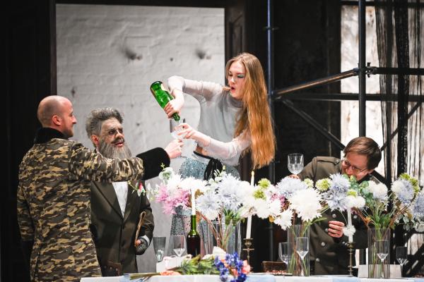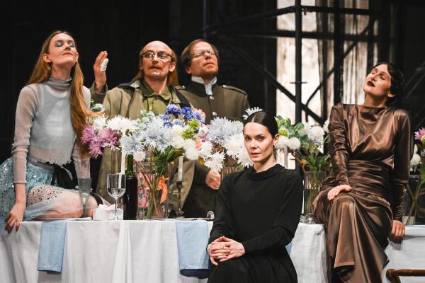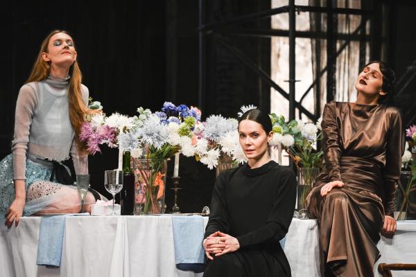 «Три сестры» Саши Золотовицкого балансируют между повседневной реальностью и воспалённым сном – с ритуальными обрядами и метафорами болезненных иллюзий. Гротескные, похожие на сомнамбул, образы героев усиливают беспощадную правду чеховской жизни. Оторваться от налипшего слоя интерпретаций канонического текста режиссёру удаётся через современный культурный код и иронию. Абсурд, прорастающий как «сорная трава», отсылки и цитаты других произведений искусства, которыми насыщен спектакль, не отменяют чеховский дух. Здесь всё также через иронию поднимаются экзистенциальные вопросы, а аккомпанементом к боли звучит смех.