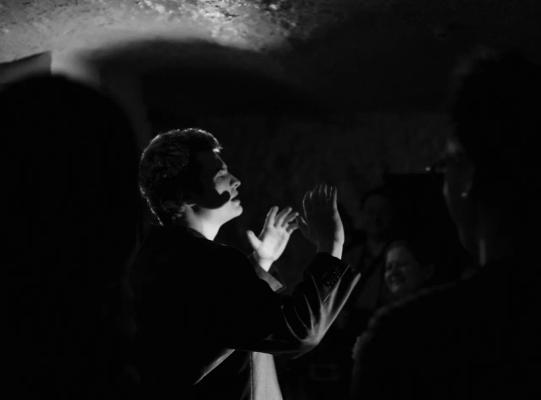 «Я иду по улице Лесная. Подхожу к желтому дому и открываю дверь. Поднимаюсь на второй этаж Театра. doc. Обычно тут весит листок с надписью «Здесь идёт репетиция. Спектакль на третьем этаже», но сейчас его почему-то нет. Я захожу в зал, где творится что-то непонятное. Я осознаю - действие спектакля уже началось. Все вокруг меня - артисты, наверное. я тоже актёр. Можно выбрать любое место. Сажусь у прохода в 3 ряду. Появляется невысокий парень и начинается спектакль. Входные двери открываются, заходят опоздавшие, и через проход от меня садится суетная девушка, и улыбается происходящему на сцене. К ней подходит невысокий парень и приглашает на сцену. Это же иммерсивный спектакль, где зритель может участвовать в самом спектакле. Ей предлагают сесть на стул. Она грациозно садится на него и окидывает взглядом зал, щурясь от света прожектора. На секунду её взгляд остановился на мне. Не знаю, что происходит в её душе, но знаю, что происходит в моей. Для меня ПОХ начался с любви…»
